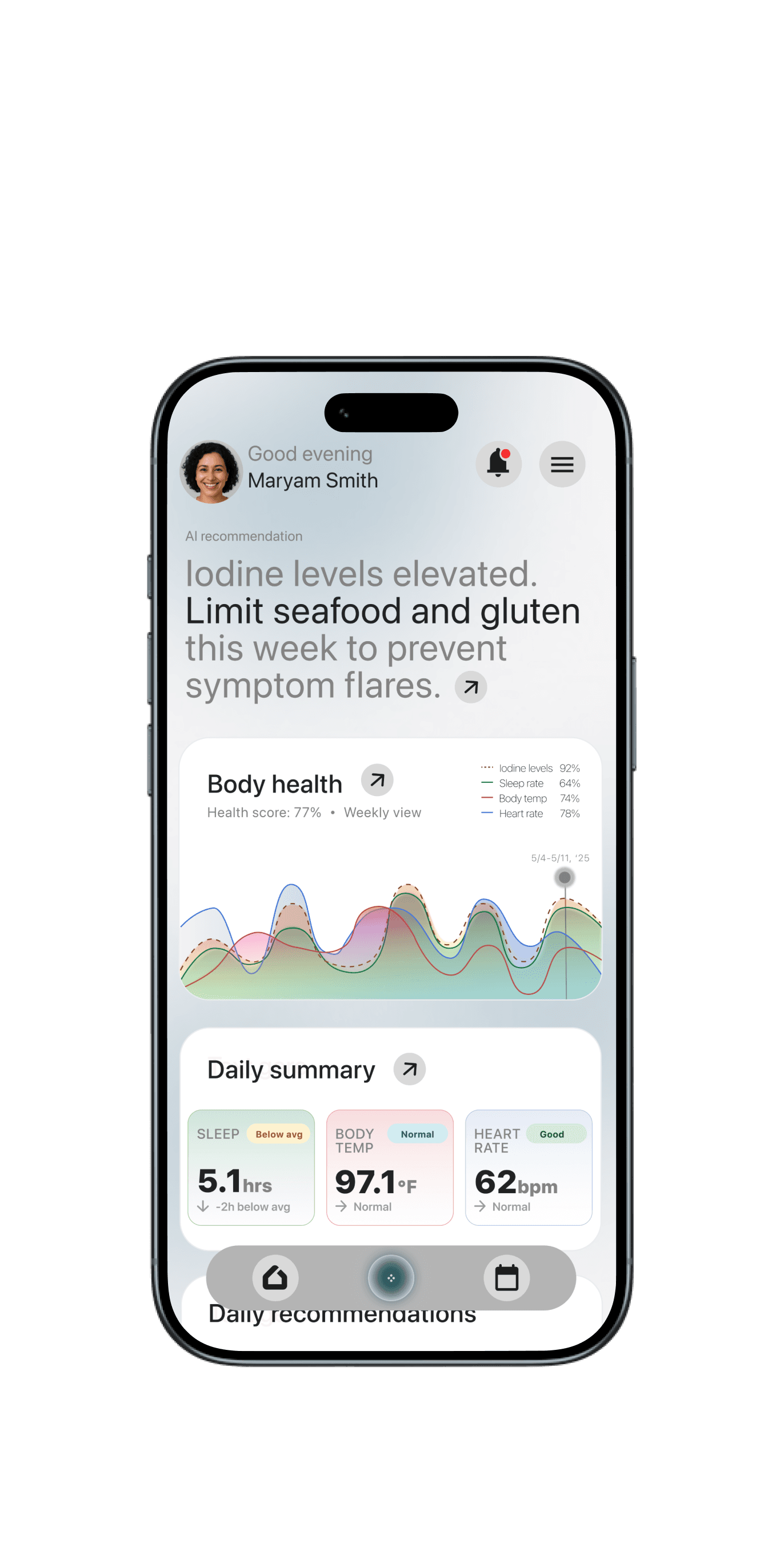 Tracks iodine levels to prevent triggers.